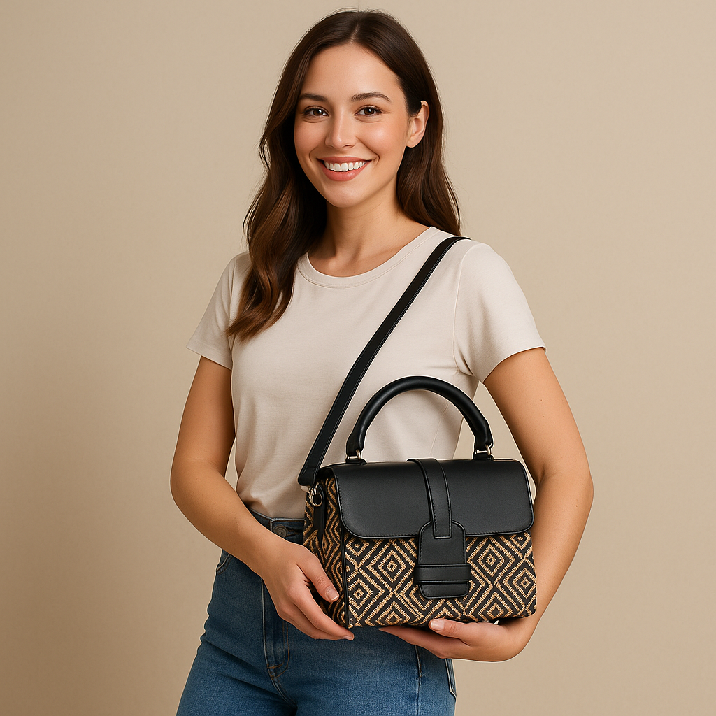 Esta elegante cartera toma inspiración del arte colombiano, con detalles sofisticados en negro que capturan miradas donde vayas. Sus dimensiones perfectamente pensadas la hacen versátil y práctica, mientras que su diseño refinado eleva cualquier atuendo. Ideal para ti, tan segura y auténtica que amas resaltar. Desde un día casual hasta un evento especial, esta pieza es tu aliada perfecta. Es una expresión de tu personalidad vibrante y conexión con lo que te inspira.